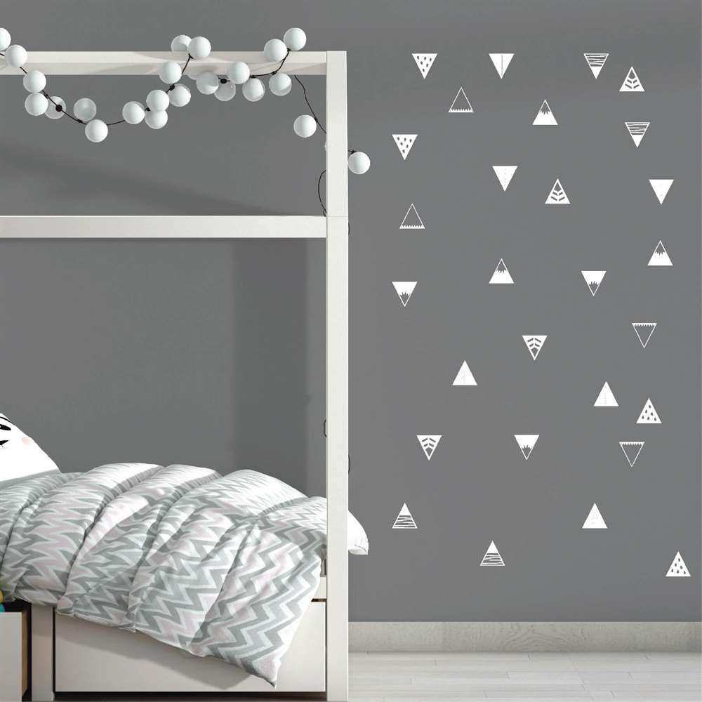 Beyaz Renk İskandinav Dağları Üçgen Duvar Sticker Çıkartma Etiket