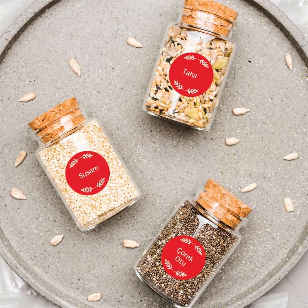 Kırmızı Renk 48'li Baharatlık Sticker Etiket Seti